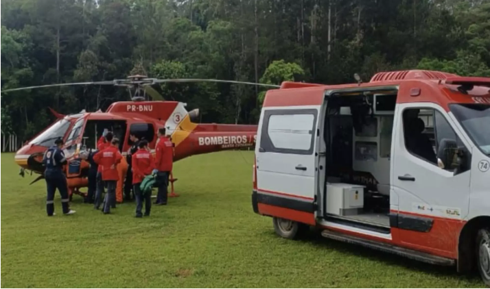 Após ser atingido, o homem recebeu atendimento emergencial ainda no local. O helicóptero Arcanjo 03, de Blumenau, foi deslocado para o resgate aeromédico, realizando o transporte da vítima ao Hospital Regional do Alto Vale, em estado grave.