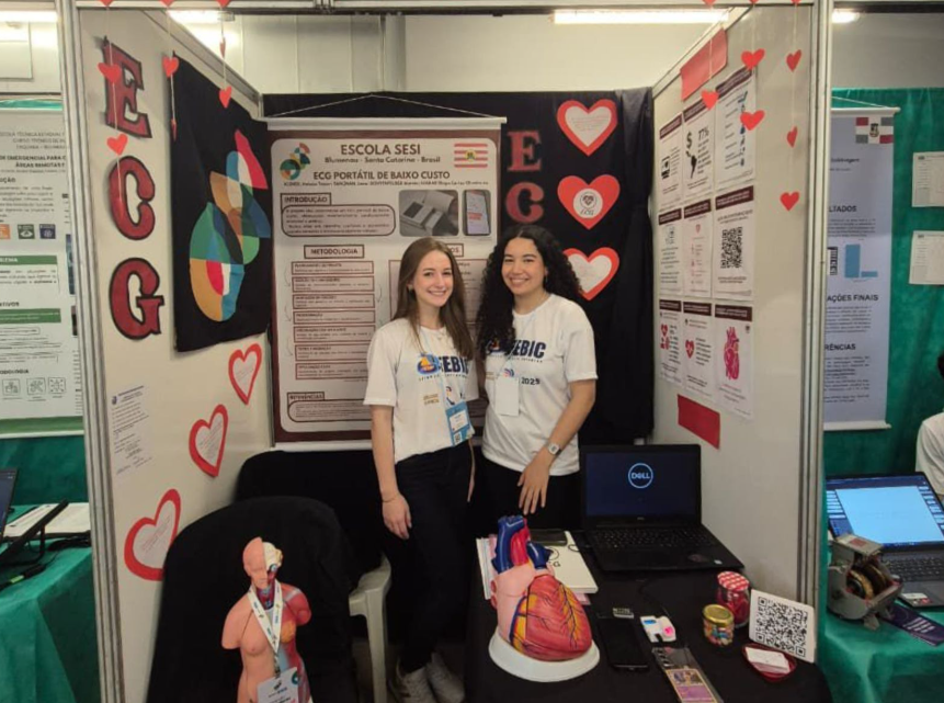 Duas alunas da Escola SESI de Ensino Médio, em Blumenau, transformaram ciência em inovação ao criarem um dispositivo portátil capaz de monitorar a saúde do coração em tempo real. Lara Tancman e Heloise Kisner receberam o título de Melhor Projeto de Santa Catarina na 10ª edição da FEBIC (Feira Brasileira de Iniciação Científica), realizada entre 8 e 12 de setembro, em Joinville.