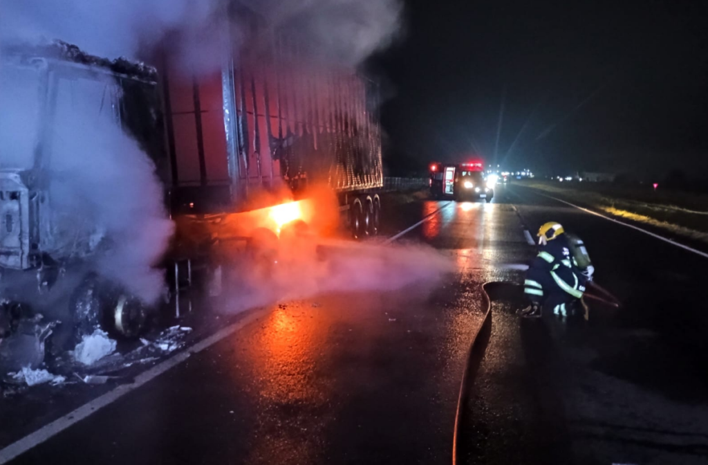 Um incêndio atingiu um caminhão na BR-470, altura do km 18, em Ilhota, por volta das 23h35min desta sexta-feira (17). As chamas se espalharam rapidamente e consumiram quase todo o veículo, que seguia vazio no momento do incidente.