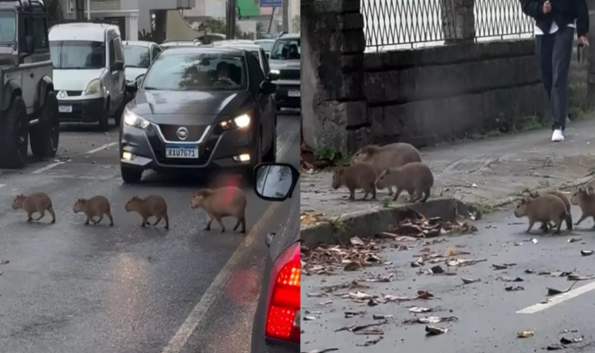 Uma cena inusitada — e irresistivelmente charmosa — surpreendeu motoristas que trafegavam pela Avenida José Acácio Moreira, em Tubarão, na manhã deste domingo (16). Uma família de capivaras decidiu cruzar a via em ritmo contemplativo, obrigando os veículos a reduzir a velocidade e aguardar pacientemente o “desfile” atravessar de um lado ao outro.
