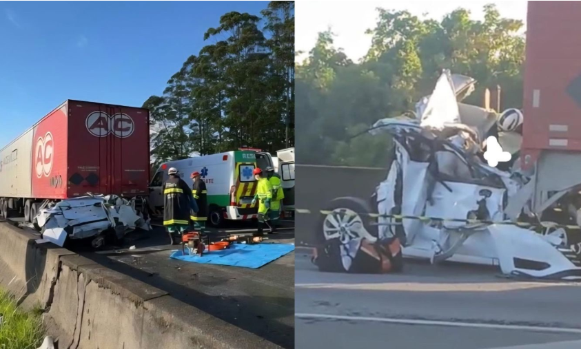 Imagens registradas por motoristas que passavam pela rodovia evidenciam a força da batida, mostrando o carro totalmente irreconhecível. A PRF, o Corpo de Bombeiros e a concessionária responsável pelo trecho permanecem no local para remoção das vítimas, perícia e liberação da via, que segue completamente bloqueada no sentido Santa Catarina.