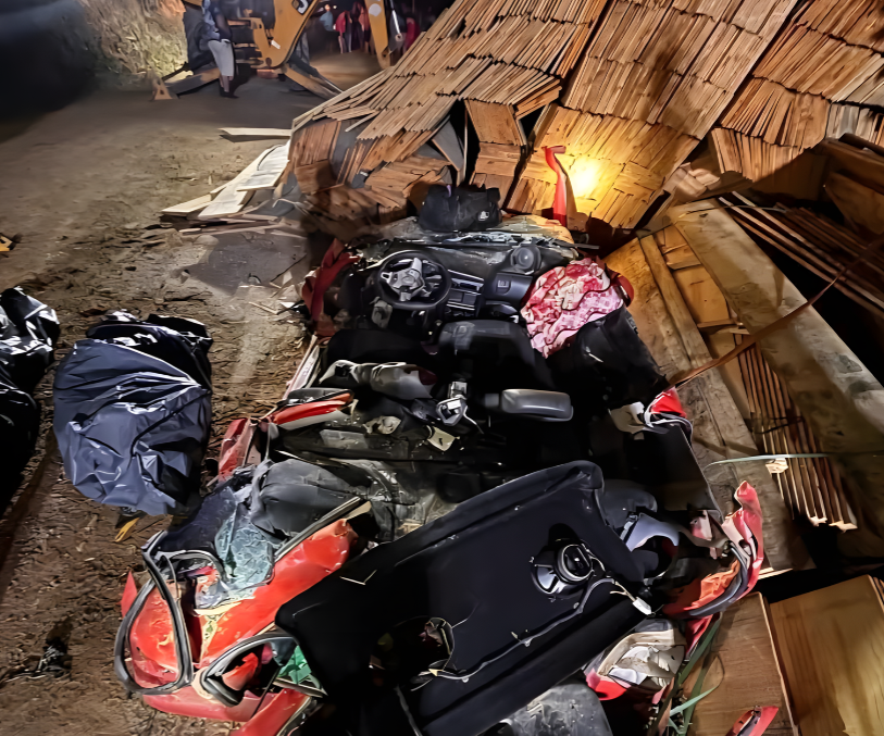 De acordo com informações das equipes de resgate, um caminhão carregado com tábuas de madeira se envolveu em um acidente e acabou tombando sobre um carro de passeio. O veículo ficou completamente preso sob a carga, o que tornou o resgate extremamente complexo.