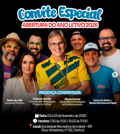 Para marcar esse momento especial, a abertura do ano letivo contará com a presença de Paulão do Vôlei, campeão olímpico, que compartilhará sua trajetória e inspirará os profissionais que, diariamente, fazem a diferença em nossos espaços escolares.
