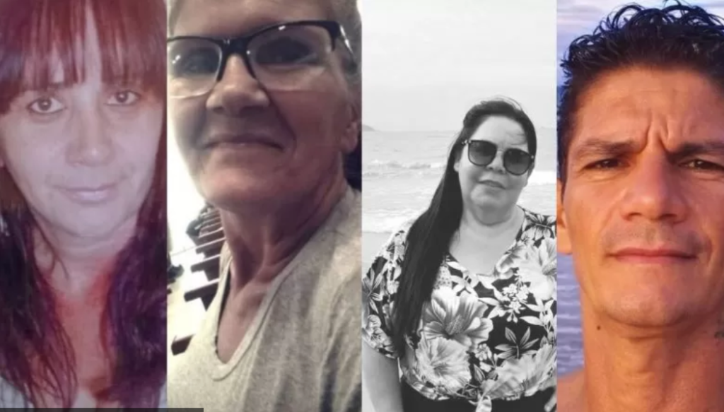 As vítimas são Jane Maria da Silva, de 57 anos; Iraci dos Santos, de 62; Neiva Corrêa, de 56; e Gilmar Dias de Azevedo, de 50 anos. Três delas morreram ainda no local, após o coletivo sair da pista e despencar por uma ribanceira. Gilmar chegou a ser socorrido com vida, mas não resistiu aos ferimentos após dar entrada no hospital.