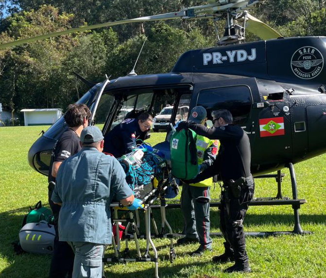 O socorro foi realizado pelo helicóptero do Saer/Fron, vinculado à Polícia Civil, que atuou na estabilização do paciente ainda na área da ocorrência. Após os primeiros procedimentos, o jovem foi transportado com urgência para o Hospital Regional São Paulo, referência na região para atendimentos de maior complexidade. Depois disso, nenhum boletim médico foi divulgado.