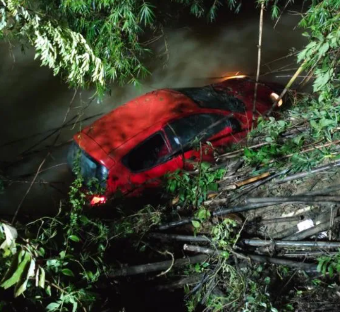 O chamado foi atendido pouco antes da meia-noite. Ao chegarem, os bombeiros localizaram o veículo parcialmente dentro da água. A condutora estava consciente, posicionada na parte traseira do automóvel, à espera de socorro.