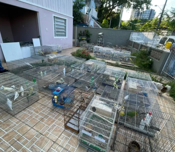 Polícia resgata 247 animais, incluindo 228 aves, e prende tutor por maus-tratos em Blumenau.