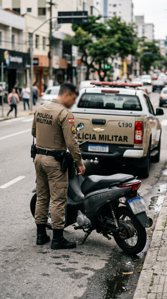 Indaial – A percepção de um policial militar durante seu período de descanso foi fundamental para desarticular, na tarde deste sábado (14), um esquema de receptação e recuperar um veículo com registro de furto na região central de Indaial. Por volta das 17h30, o agente, que trafegava pela Rua Marechal Deodoro da Fonseca, no bairro Tapajós, deparou-se com uma cena que lhe pareceu familiar: uma motoneta Honda/Biz trafegava tranquilamente, mas seu farol e design acenderam um alerta na memória do profissional.