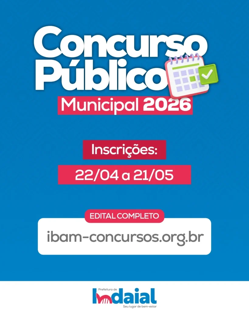 OPORTUNIDADES NA PREFEITURA DE INDAIAL – Concurso Público 2026🎓✨!