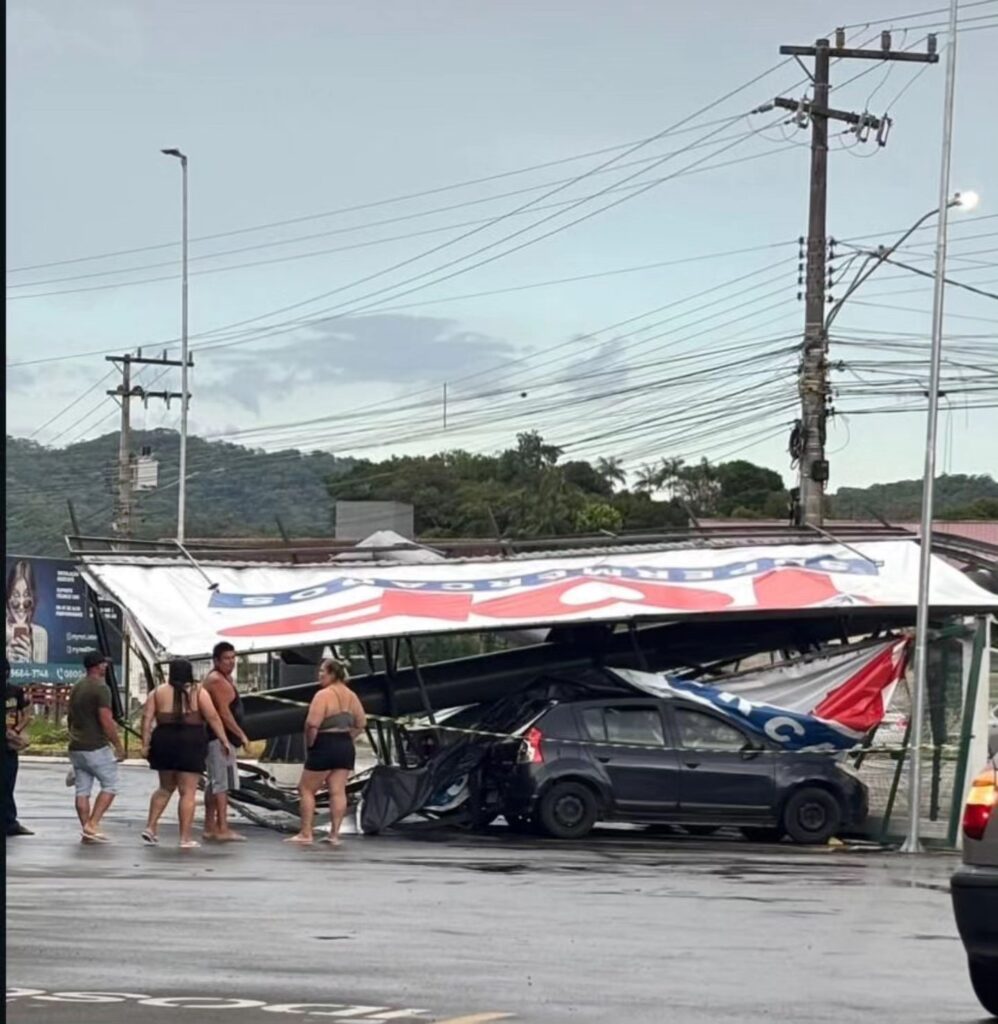 Além do incidente grave com a placa, a Defesa Civil local registrou múltiplos destelhamentos, alagamentos, quedas de árvores e de um poste de energia, que interrompeu o fornecimento para cerca de nove mil residências. Equipes trabalham para normalizar a situação e atender ocorrências. Para emergências, a Defesa Civil atende pelo 199 e o Corpo de Bombeiros pelo 193. A população deve buscar informações oficiais pelo aplicativo Alerta Gaspar.