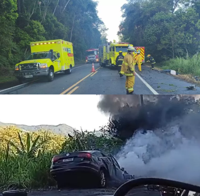 De acordo com informações preliminares, a colisão envolveu três veículos e teve grande intensidade. Com o impacto, dois dos automóveis acabaram sendo atingidos por chamas, o que agravou ainda mais a situação e dificultou o resgate inicial das vítimas. As circunstâncias que levaram ao acidente seguem sob investigação pelas autoridades competentes.